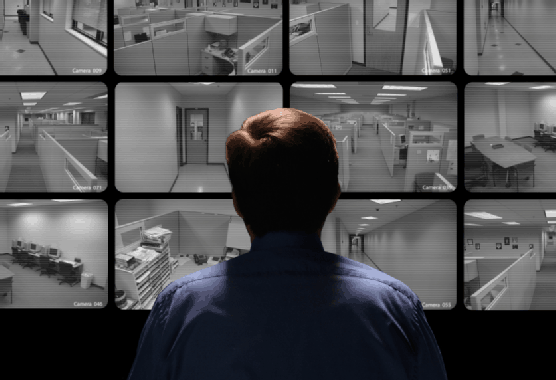 A few years ago I worked in an office where a video camera was installed during my time of employment. The camera was positioned in our office, in the crevice between the wall and the ceiling, peering directly down on me and my coworkers to observe our every move.
